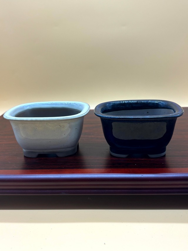 青と白色の貫入鉢の盆栽鉢 2個セット
