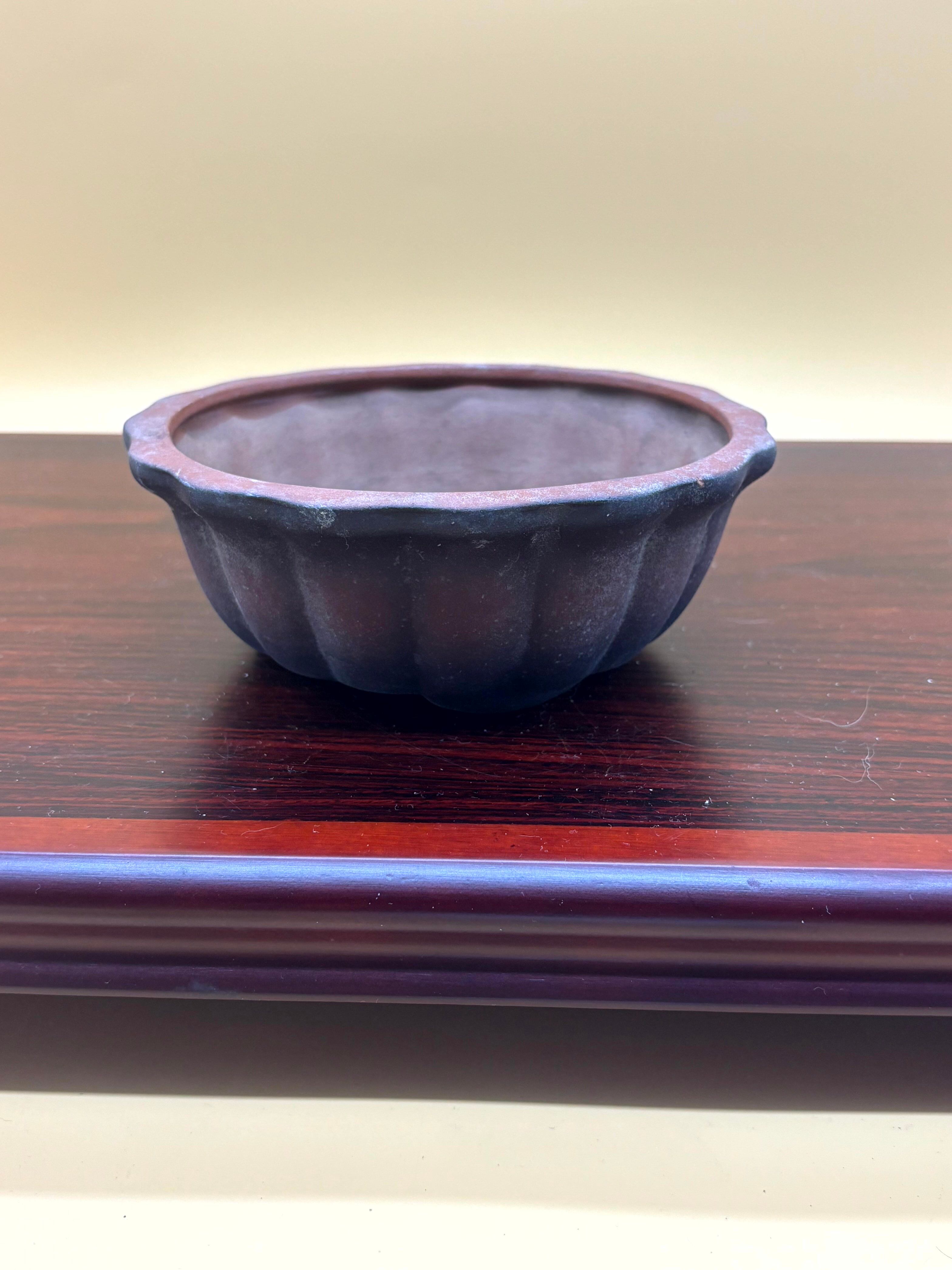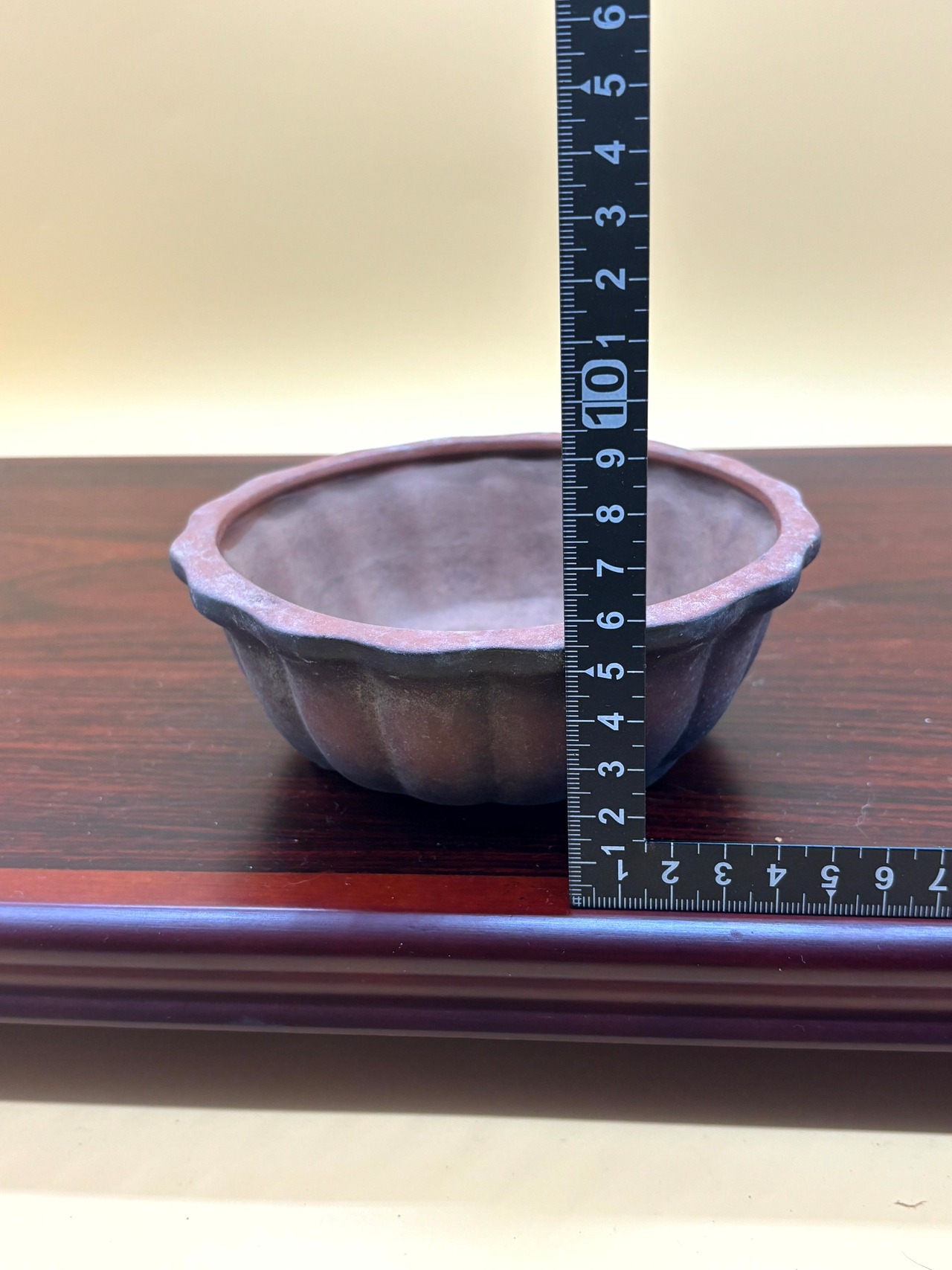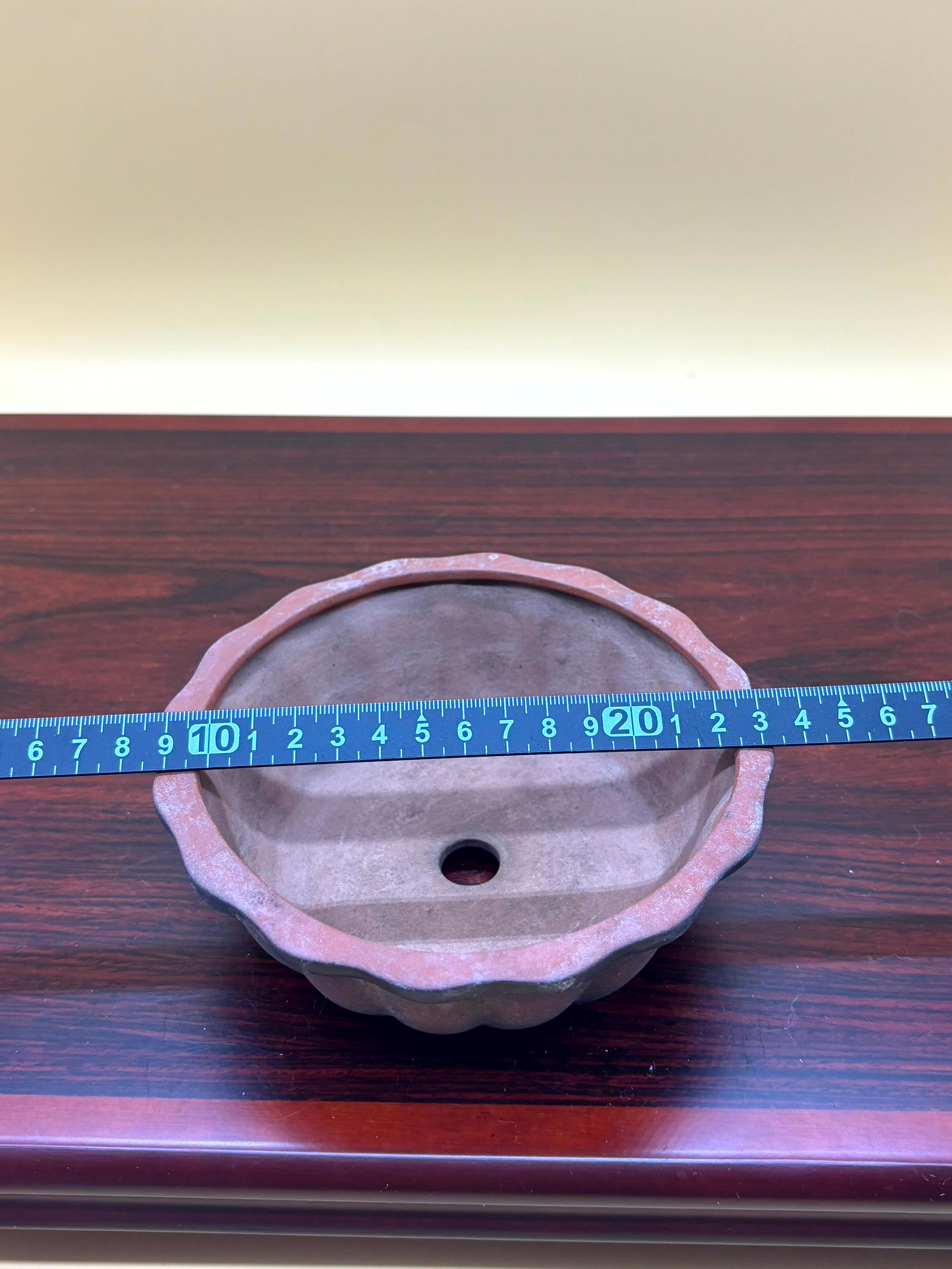 丸型の花形様の盆栽鉢になります。底穴あり。