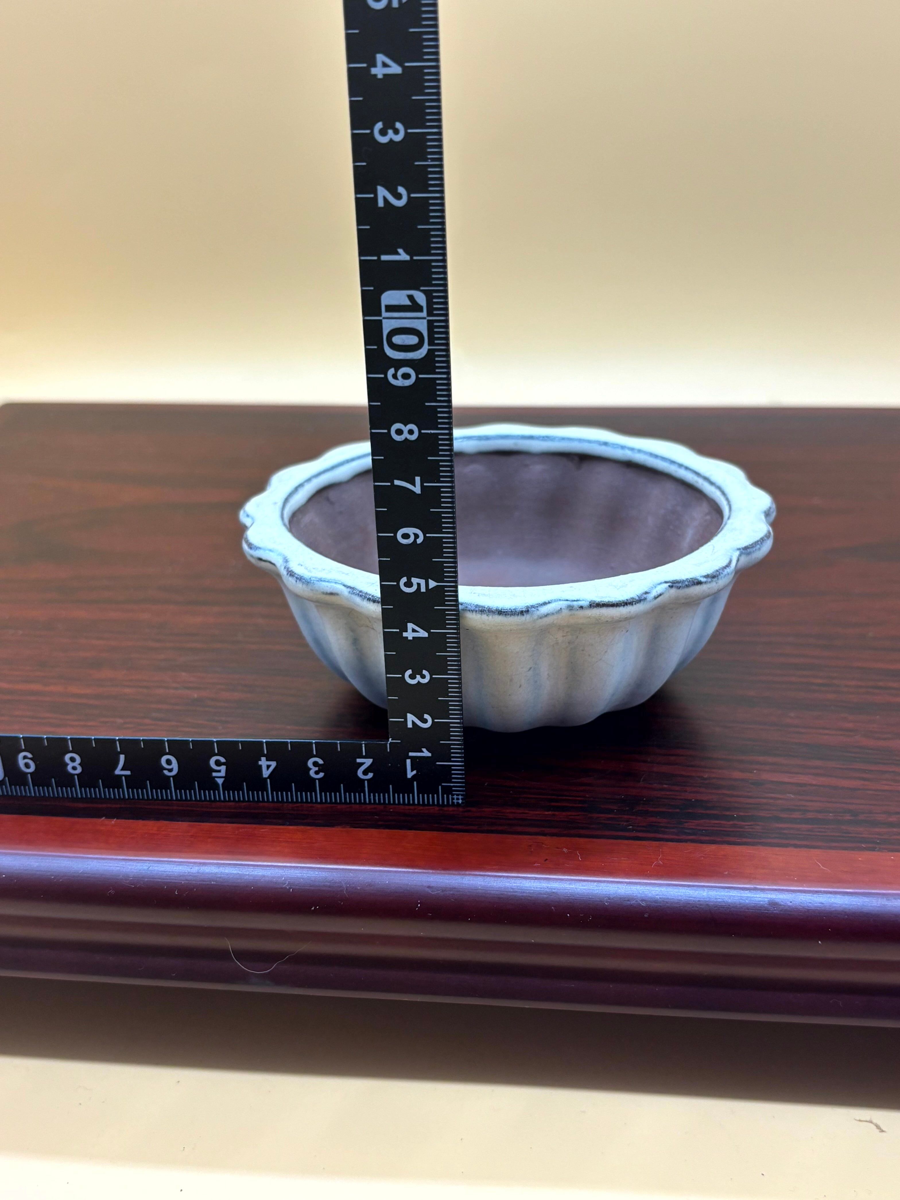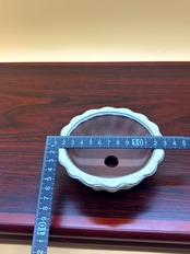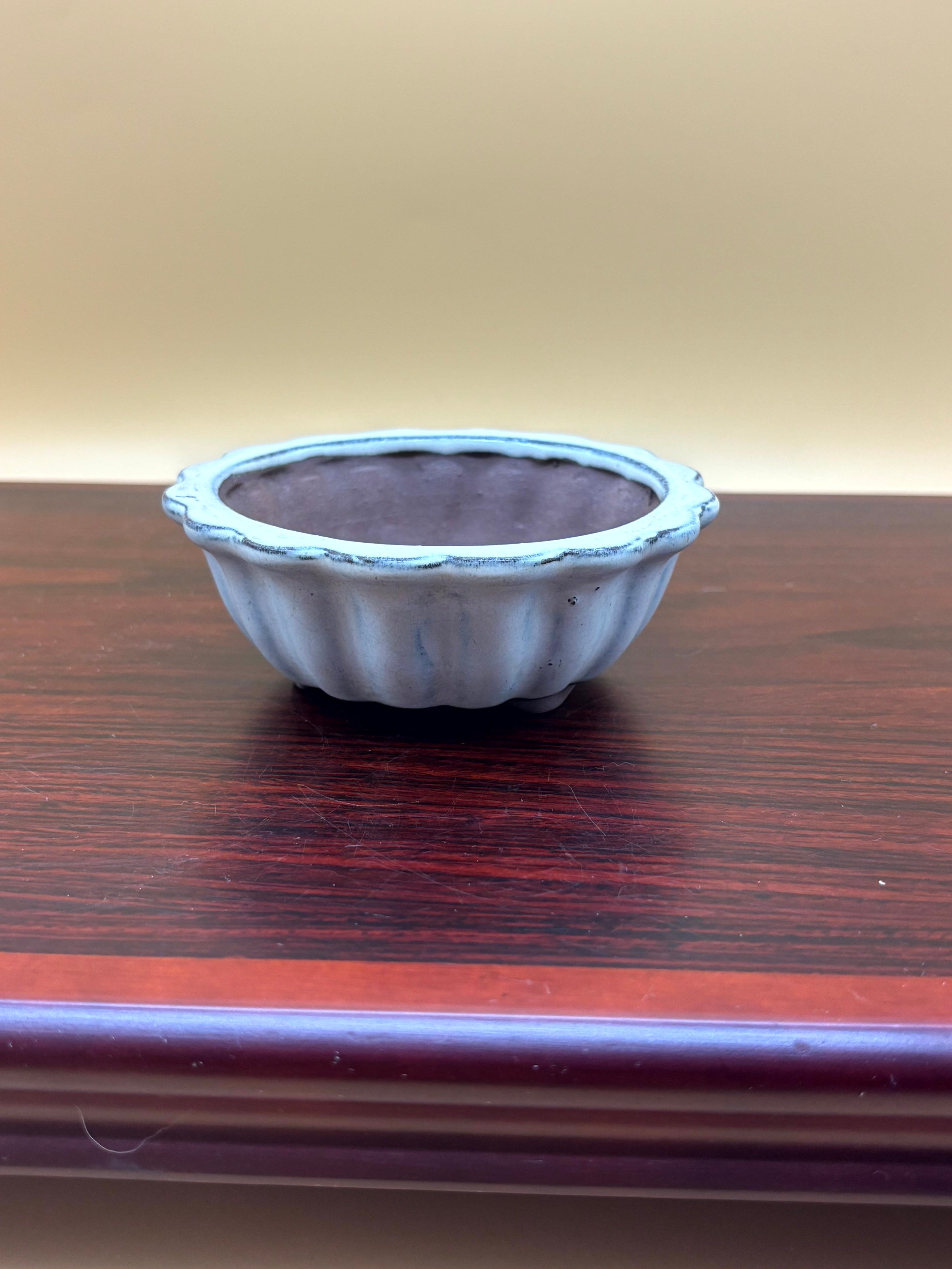 クリーム色の陶器製の丸型鉢で、底穴あり。