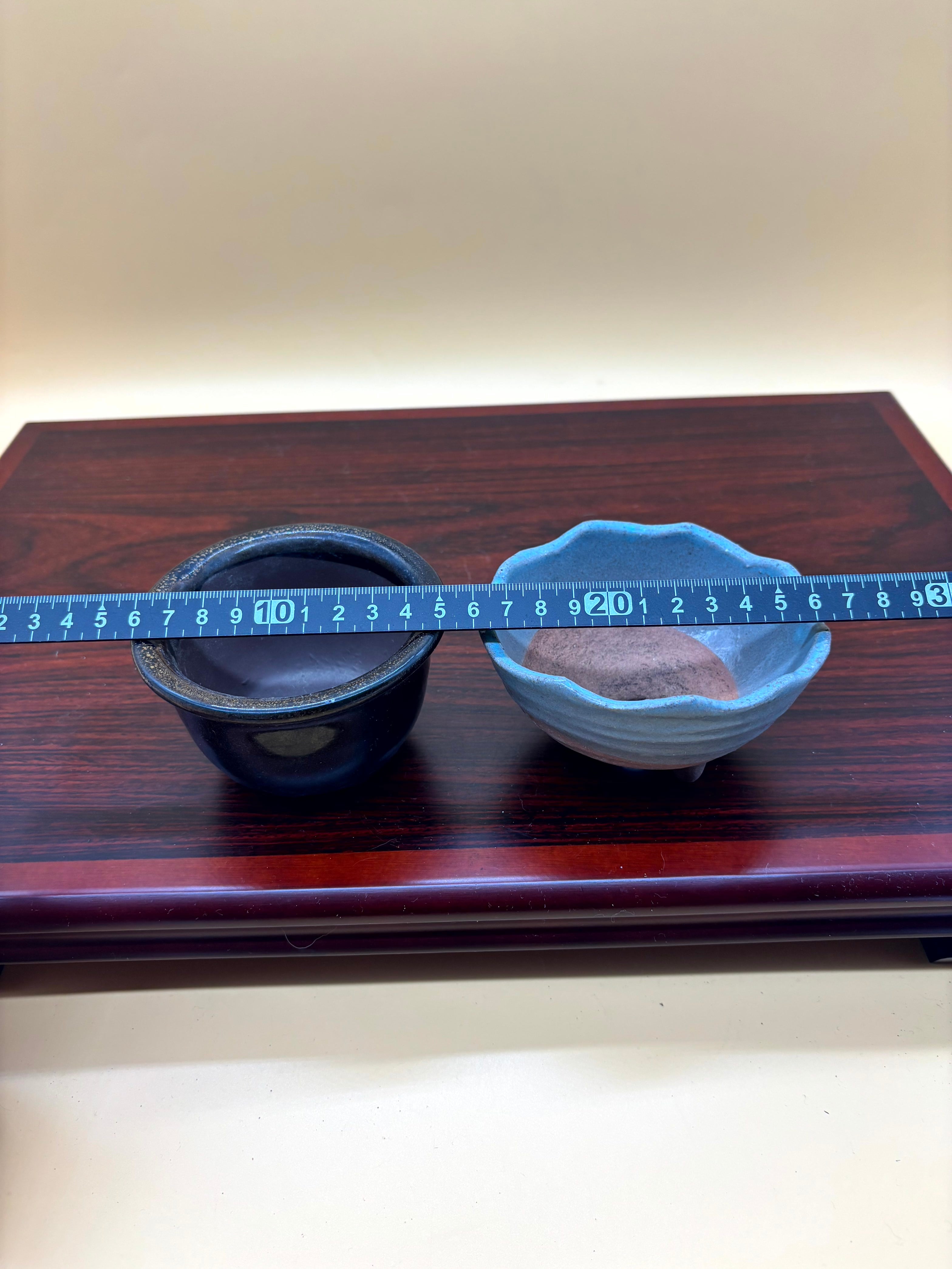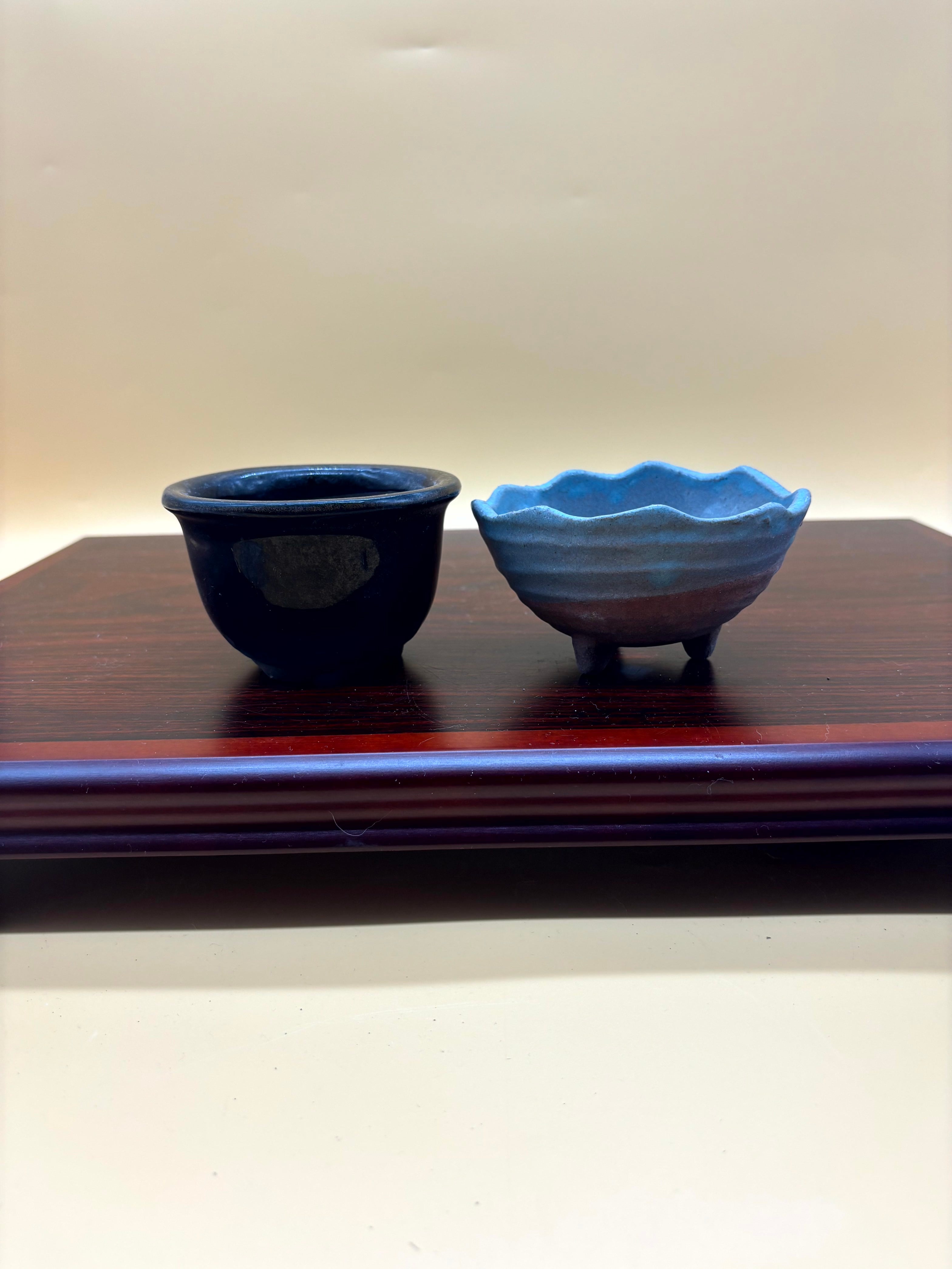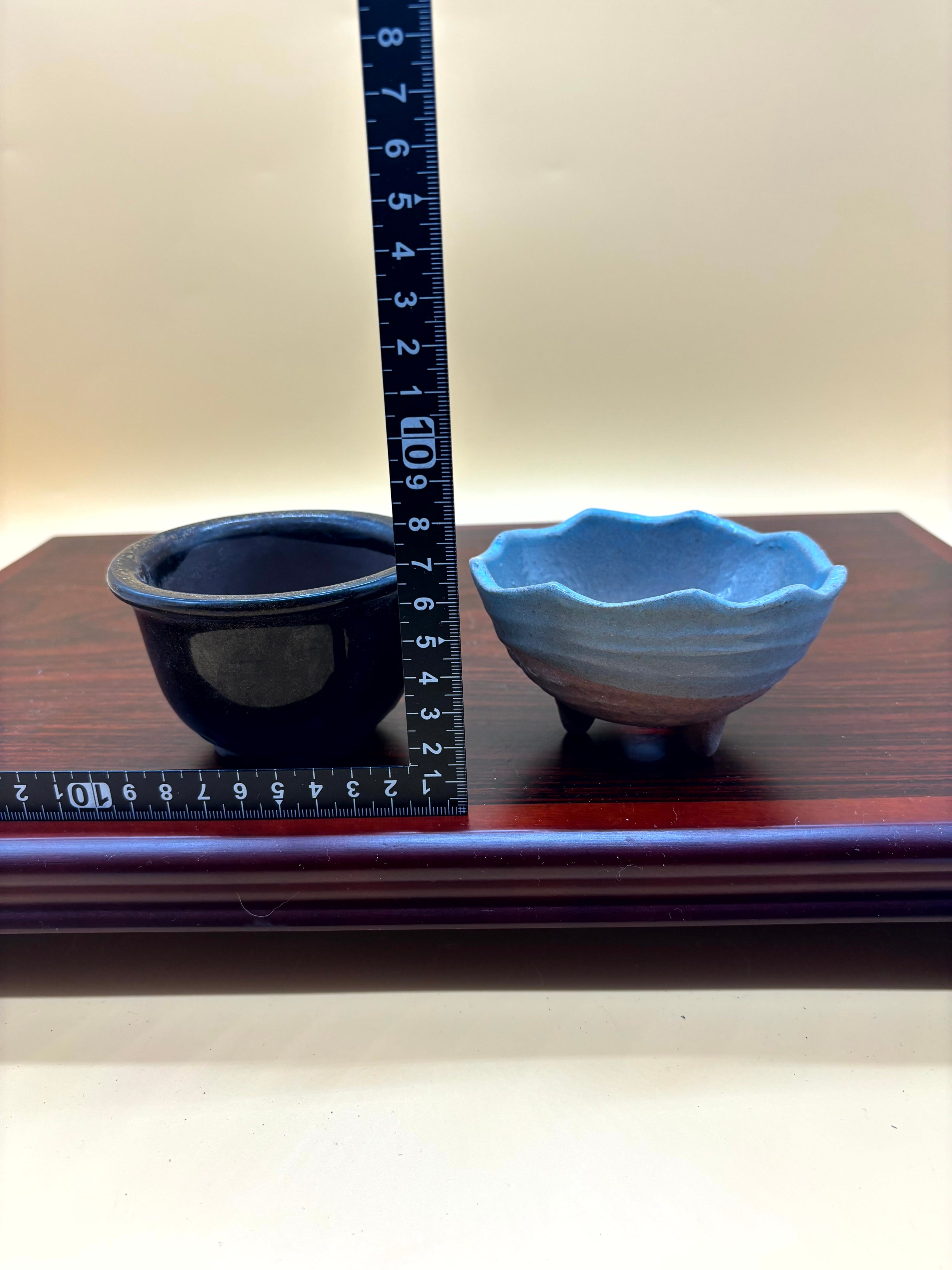 黒茶とグレーの陶器 盆栽鉢 2点セット