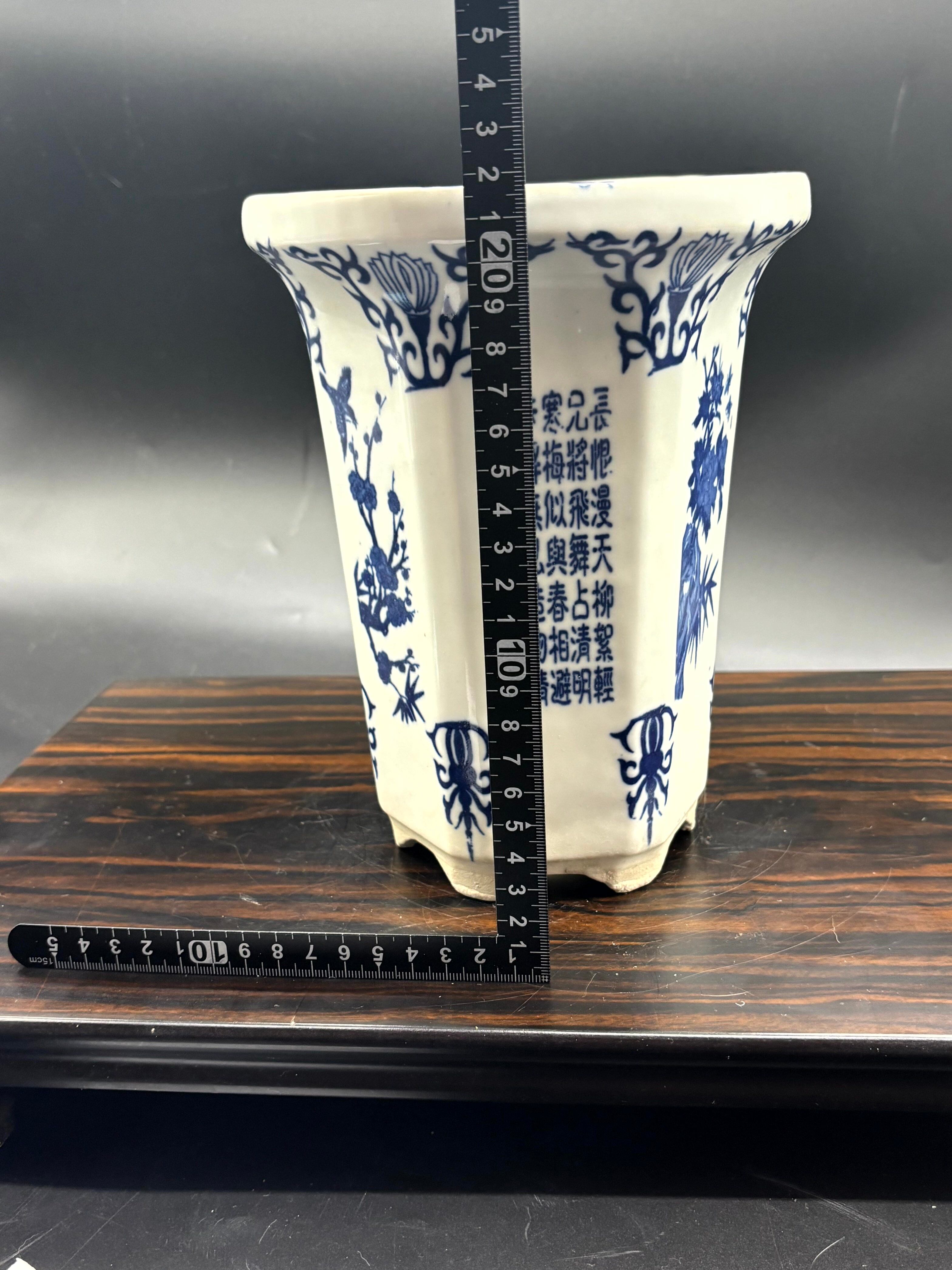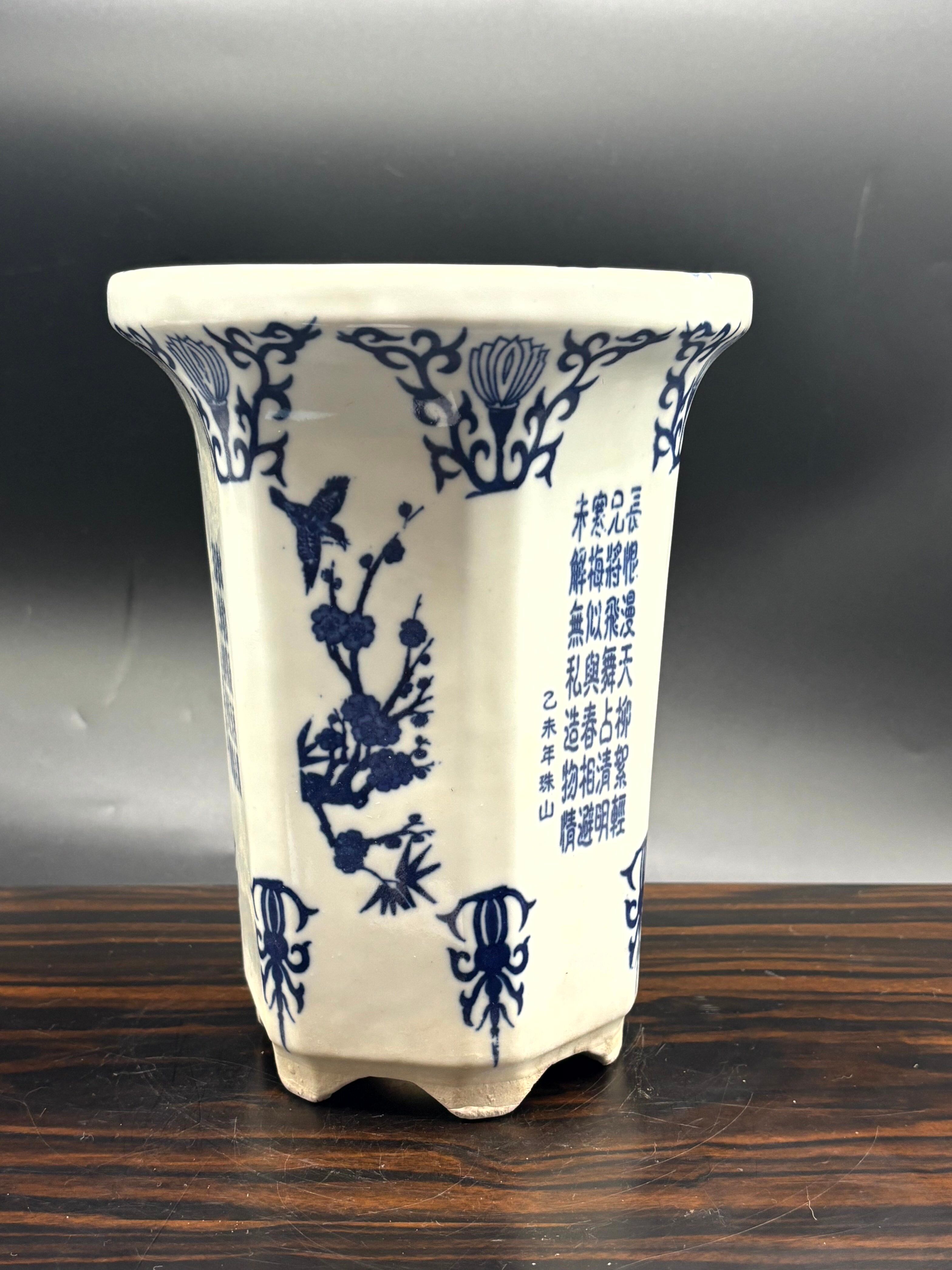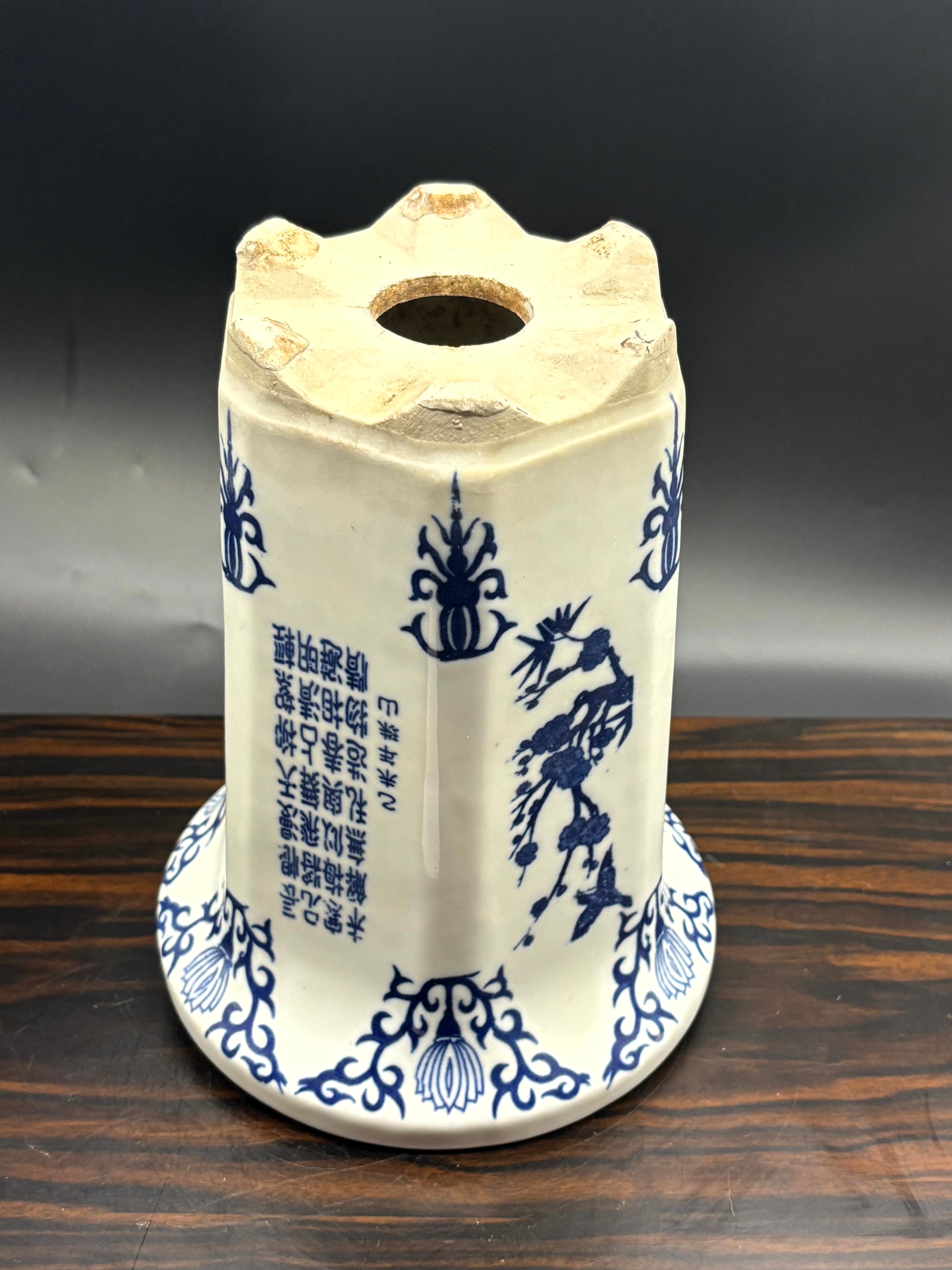 漢詩と花鳥文が描かれた美しいデザインで、時代を感じさせる骨董品です。